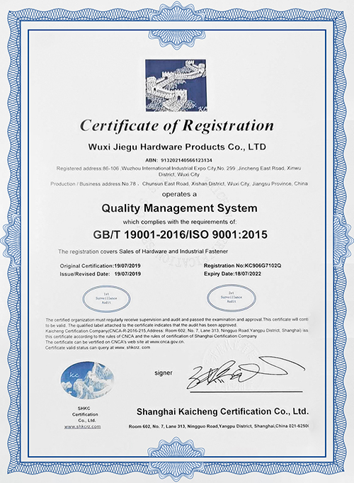 公司自創立以來,得到客戶頂力支持,至今發展成為擁有各種全自動數控設備百余臺,各種輔助設備30余臺的緊固件生產實力廠家?,F產品暢銷于全國各省自治區,30%產品遠銷日本、歐州、美國、韓國、新加坡、馬來西亞、澳大利亞等20多個,企業自己擁有自營進出口權。同時,公司為了使產品永遠保持,以國際水平為目標,健全科學,合理的質量和管理體系,以確保質量產品來滿足客戶的要求。